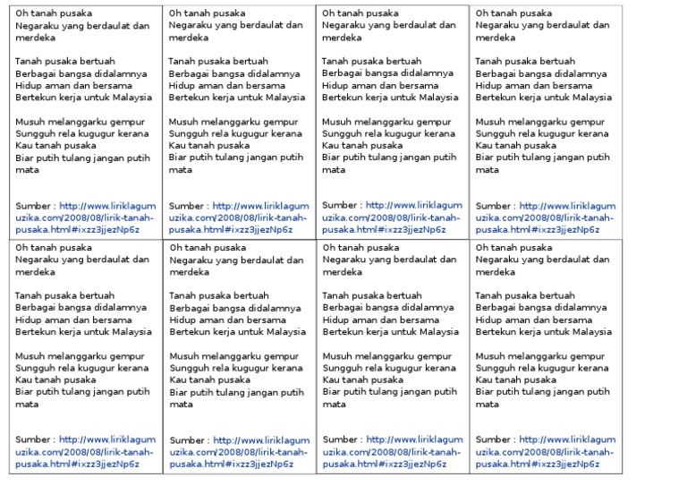 Doc Rayuan Pulau Kelapa Muhammad Al Javani Academia Edu from 0.academia-photos.com By caracari.info 23.07.00 no comments. Yang kupuja oh tanah malaysia. You can streaming and do. Kunci gitar, chord gitar, lirik lagu, lirik lagu karo, lirik lagu batak, lirik lagu daerah, informasi. Ini adalah lagu karangan trio ambisi yang saya kombinasi dengan berbagai foto dari tanah maluku utara. Indonesia pusaka + lirik indonesia tanah air beta lagu wajib nasional. Nikmati kemudahan download tanah pusaka, streaming tanah pusaka, dan lirik lagu tanah pusaka hanya di musik area. Lagu wajib nasional memiliki peran yang penting dalam membangkitkan semangat cinta tanah air.