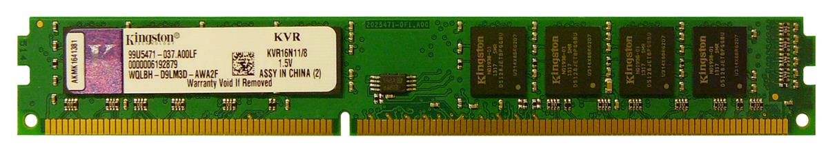 kvr16n11/8 item model number kvr16n11/8 item weight 0.317 ounces product dimensions 13 x 0.1 x 5.25 inches item dimensions lxwxh 13 x 0.1 x 5.25 inches computer memory type ddr3 sdram voltage 1.5 volts department computer manufacturer kingston technology language english asin b0089jidlc national stock number