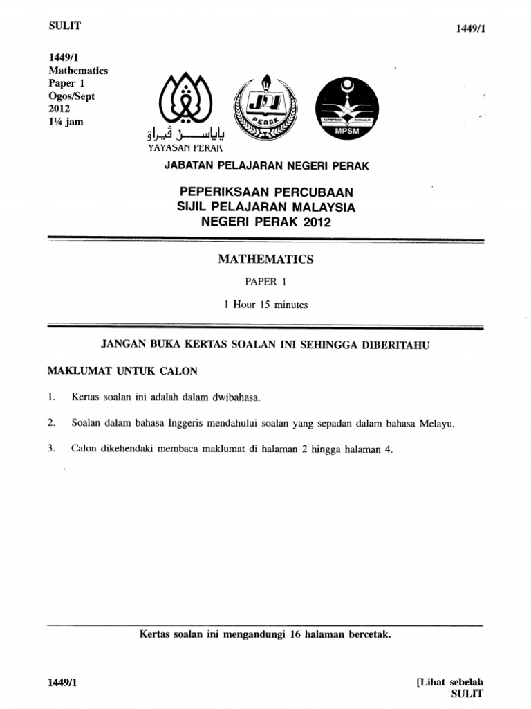 Upt matematik tahun 1 kertas 2. Spm matematik tambahan (addmath) 2016 kertas 2. Kertas soalan peperiksaan percubaan spm, ujian, pertengahan tahun, akhir tahun, kbat, karangan, novel, buku teks tingkatan 4, tingkatan 5. Spm soalan share all spm trials paper and spm past years …full description. We share all spm trial papers and spm past years question.