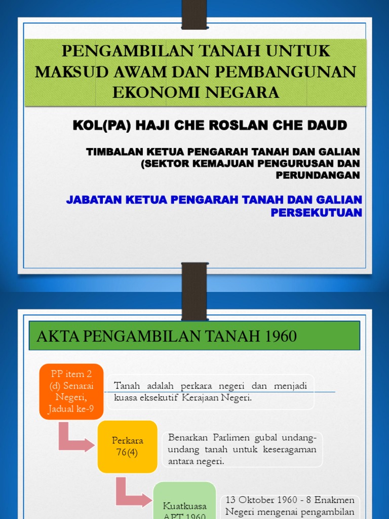 Institut tanah dan ukur negara kementerian sumber asli dan alam sekitar behrang, 35950 tanjong malim, perak darul ridzuan www.instun.gov.my seminar : For more information and source, see on this link : Pindaan undang undang s 2 akta pindaan pengambilan tanah 1984 akta a575 menambah dua subseksyen baru kepada s 4 akta 1960. Seksyen 3 (1)(b) akta pengambilan tanah, 1960 ver. Akta pengambilan tanah 1960 pdf.