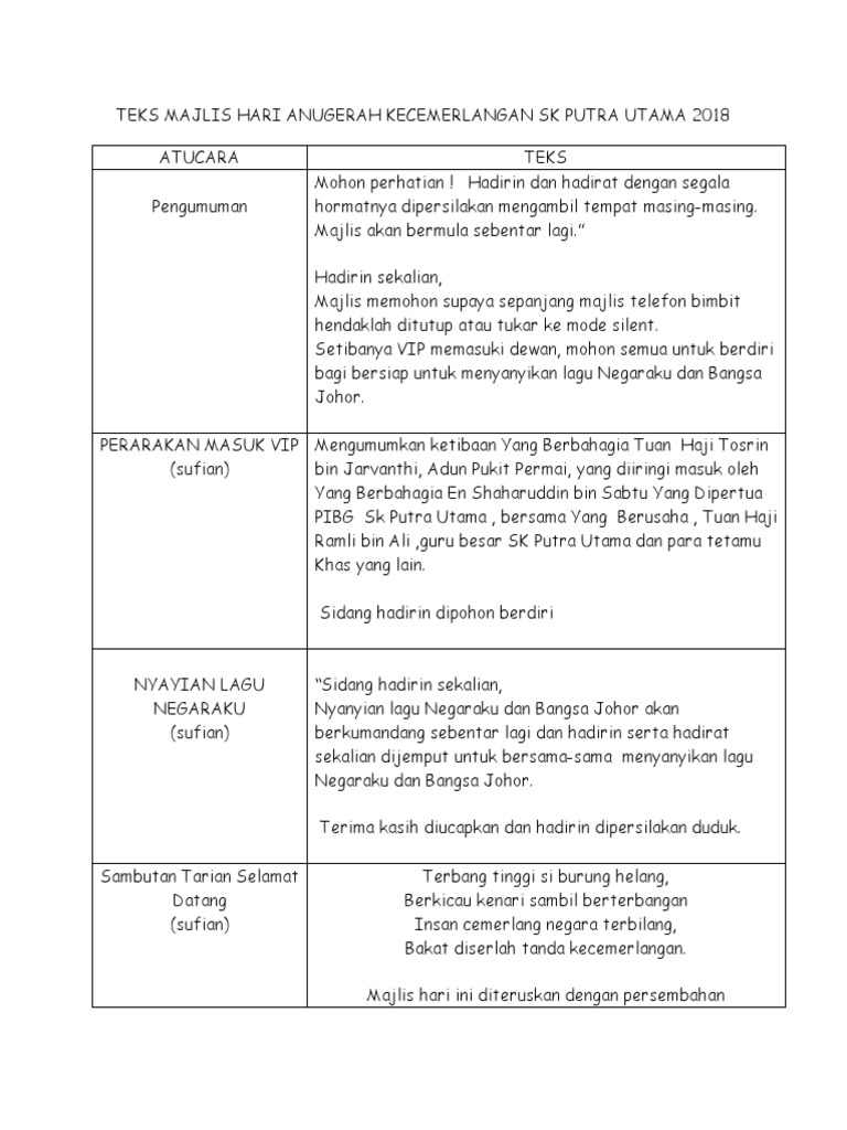 Teks pengacara majlis hari anugerah kecemerlangan 2018. Maybe you would like to learn more about one of these? We did not find results for: Check spelling or type a new query.